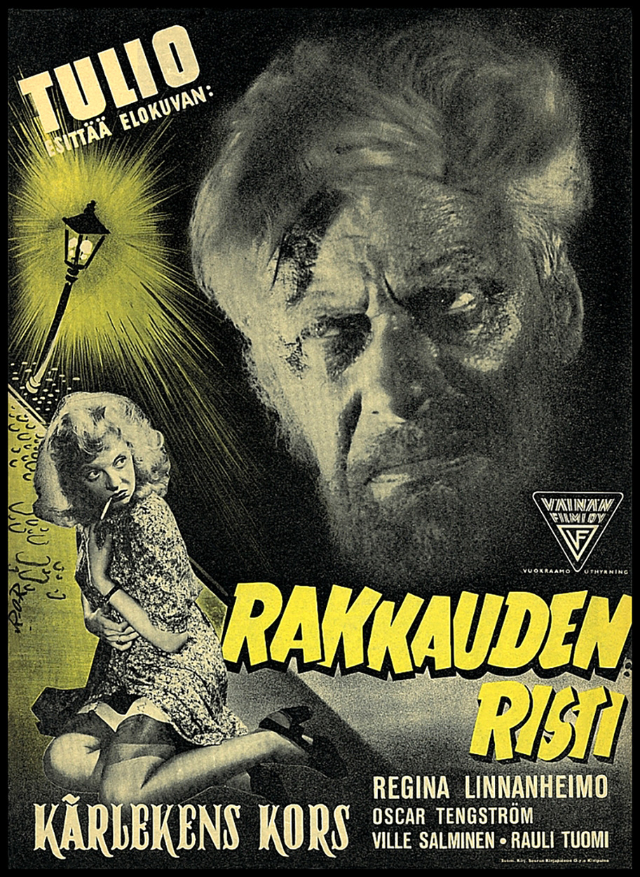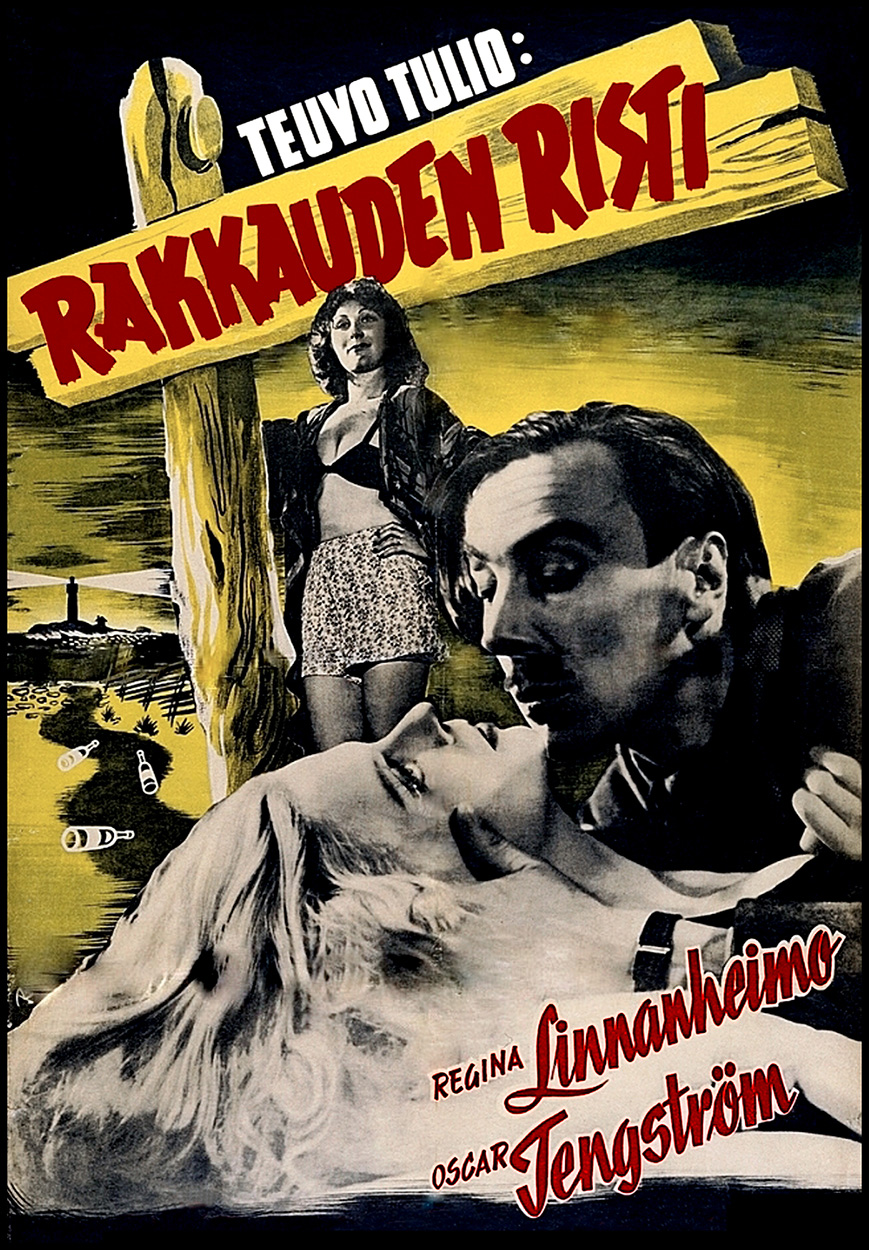 Throughout the 1930s and '40s, director Teuvo Tulio was responsible for a string of overheated Finnish melodramas and this was one of his most delirious concoctions. Although it nominally extols the virtues of purity and nature, this black-and-white tragedy is so steeped in sex, temptation and scandal that it would've never made it past the US's ludicrously restrictive Hayes Code. Loosely based on a story by Alexander Pushkin and starring Regina Linnanheimo -- one of her country's most popular stars, referred to by the press as "Finland's Bette Davis" -- it follows the travails of a naive young woman who's used, abused and destroyed by controlling, judgmental men... On a small, remote island, grizzled lighthouse keeper Kalle (Oscar Tengström) resides with his beautiful blonde adult daughter Ritta (Linnanheimo), who cavorts about this secluded paradise, plays with her various pets and enjoys nude swims. Like her mother, who split this lonely lifestyle years earlier in favor of the mainland, Ritta dreams of visiting the city someday, but father is determined to keep her safe from the decadent "bad world." One day, an unconscious stranger washes up on the rocks and, upon awakening, he's instantly enraptured by innocent Ritta. This rescued man, wealthy Mauri Holmberg (Ville Salminen), convinces her to accompany him back to the city, but Ritta's initial plan of staying only one night promptly goes awry since Mauri turns out to be a manipulative scumbag. Meanwhile, Kalle might've initially come off like a wildly over-protective, paranoid parent, but his fears were thoroughly justified! After being raped on her first day away, Ritta is abandoned, passed around by various men and winds up a streetwalker, living in a crowded flat for low-rent whores. Things seem to turn around for her when a poor but handsome artist hires Ritta to pose for a painting -- scantily-clad and crucified on a "Cross of Love" -- and, unaware of her past, he falls in love. Alas, the shit hits the fan when Kalle re-enters the scene and a convoluted scheme to hoodwink papa goes seriously haywire, exposing the truth to all. Sure, the acting is over-the-top, but it's rooted in an almost shocking level of conviction. Linnanheimo brings a palpable desperation and craziness to her role, as Ritta morphs from wide-eyed naïf to hardened, hysterical sinner, with her solitary shot at redemption and true happiness all too ephemeral. And while Tengström's bullheaded father is desperate to locate wayward Ritta, it's not to rescue her, but instead strangle his whore of a daughter, so the guy is obviously in need of some serious anger management. Tulio pours on this type of exaggerated excess throughout, while giving the proceedings a highly expressionistic style which often borders on kitsch. It's outrageous, ridiculous, yet also utterly sincere in its agenda.