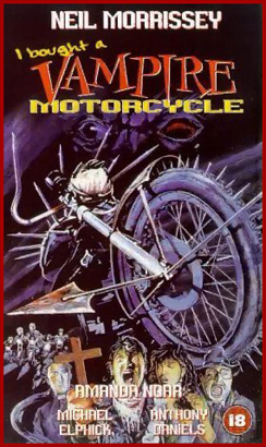 The high-concept title might sound like a shitty Touchstone comedy (probably starring Whoopi Goldberg), but this British pic turns out to be surprisingly nasty and amusing. Though never released in the US, director Dirk Campbell does a fine job balancing humor and bloodshed, while never succumbing to easy 'wackiness'. When a pack of homicidal bikers break up a satanic ritual, the demon they were in the midst of resurrecting possesses a nearby motorcycle, when one of its dying minions pours his blood into the gas tank as his dying act. We then meet Neil Morrissey as Noddy, a young schmuck who becomes the bike's new owner -- unaware that it runs on blood and doesn't like strangers fucking about with it. In fact, when one of Noddy's pals, Buzzer, simply steals the cycle's gas cap, he winds up torn to pieces the next morning. Of course, it inexplicably stalls when you try to take it out in the sunlight. Soon, the cycle begins driving around town on its own, complete with rotating blades jutting from its sides (at a convenient height to lob one's head off, of course). Its broken headlight turns into a hungry maw that rips off a meter maid's hand when she tries to ticket it. And when the bike begins showing up with human remains stuck to it, it's time to consult a priest (Anthony Daniels), who tries to exorcise the thing -- only to have his fingers severed off by it. Sure, the film is silly, but it that's half the fun, especially when the story is also laced with juicy gore, vomit and lots of dead bikers. We also get a POV shot, through the headlight, as the cycle ogles Noddy's gal, Kim (Amanda Noar); plus the damnable bike going on killing sprees in a hospital ward and a bodybuilding gym. Full of lovably absurd touches, as well as an unfathomable nightmare in which Noddy pinches off a loaf in the toilet and his turd begins talking to him and trying to leap down his throat. Uggh. And how can you not like this cool bike, which grows porcupine-like spikes along its gas tank, and gores folks with its spiked handlebars? Co-starring Michael Elphick as a police inspector who (luckily) stinks of garlic, this is an imaginative spoof that ends up being much more entertaining than the type of pics it's making light of.