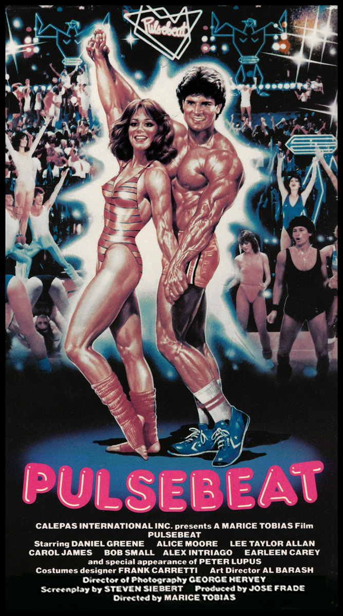 In the wake of the aerobics/health-club boom of the early-'80s, a few dumb-ass movie producers decided to embrace this Lycra-leotarded trend. There were mainstream efforts like PERFECT, drive-in fare like HEAVENLY BODIES, plus this Spanish-funded low-budgeter shot around South Beach, Miami. And you know you're in for something hypnotically cheesy during its quick-cut opening credits -- flexing male torsos, women's jiggling behinds and breasts, close-up pumping and dancing -- with director Marice Tobias (the first female director to win a Clio Award and, nowadays, one of Hollywood's premiere voiceover coaches) delivering 91 minutes of enjoyably breezy, Dancercise-era idiocy, with enough gratuitous bare flesh to satisfy both male and female audience members. Alas, this was her only feature... Daniel Greene (ELVIRA, MISTRESS OF THE DARK) stars as the beefcake owner of Roger's Gym, but even though their aerobics classes are packed with hot young babes and heavily-permed guys in tank-tops and teeny shorts, the business is hemorrhaging cash. Maybe it's because Roger is an immature asshole with abrupt mood swings and a staggering potential for skin cancer? Phys Ed instructor Annie (Lee Taylor Allan) works with cheerful black kids and has a crush on muscleheaded Roger, so she tries out for an instructor job at his gym and, within seconds, has everyone dancing in perfect unison. In order to save the place, Annie and Roger's big plan is to rename it Pulsebeat, update its look to suit the modern singles' lifestyle, and also win the city's high-profile Aerobithon, a competition that consiss of running, weight lifting, stationary bike, aerobics, and an endurance finale with two grown men battling it out over calisthenics! And yes, it's all fucking ridiculous. Meanwhile, its shamelessly schlocky script makes the BREAKIN' movies look deep and introspective. The cast includes Alice Moore (a.k.a. Alice Moro, from EXTERMINATORS OF THE YEAR 2000) as the gym's sultriest, most mysterious member; Bob Small (KING FRAT) is a milquetoast accountant who provides comic relief by trying to get in shape and demonstrates how stalking is the simplest way to win a beautiful woman's heart; MISSION: IMPOSSIBLE's Peter Lupus pops in as Italian sword-and-sandal actor Greg Adonis, who bonds with Roger over their mutual love of pumping-up and adds an unintentional gay undercurrent; and Helga Liné (Lupus' co-star in two of his early peplums, GOLIATH AT THE CONQUEST OF DAMASCUS and HERCULES AND THE TYRANTS OF BABYLON) is Roger's competitor, whose Rejuvenarium keeps poaching his employees. Packed with sweaty exercise montages and '80s trappings -- from its polyester fashions, to the neon-eyesore set decoration, to a soundtrack by Walter Murphy (who had a BILLBOARD #1 hit with the disco-instrumental "A Fifth of Beethoven") -- PULSEBEAT is so deliriously disjointed that I often wondered if the reels were out of order. That's a sure sign of exploitation greatness.