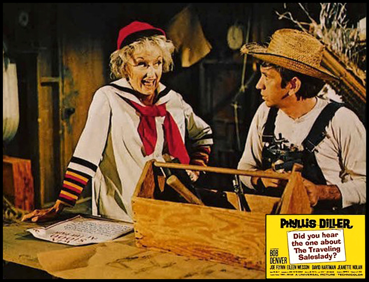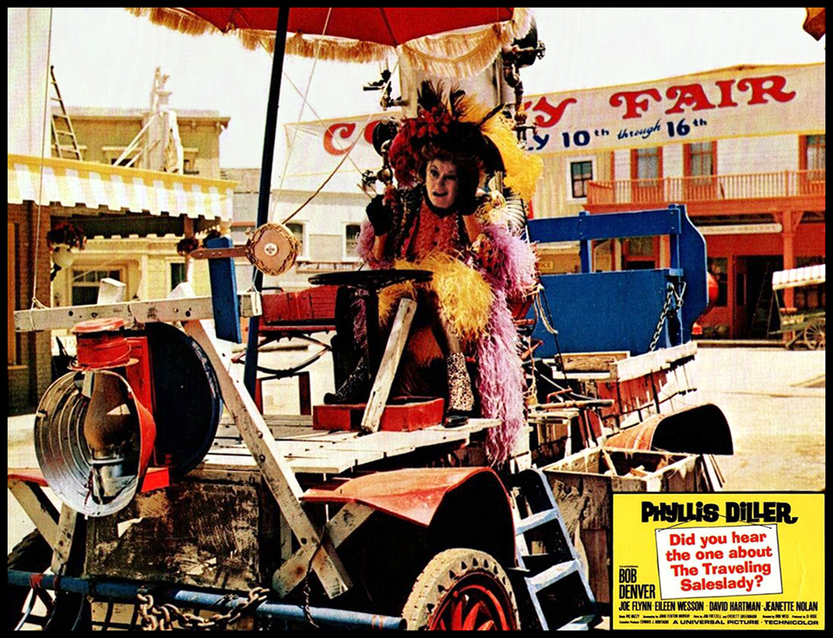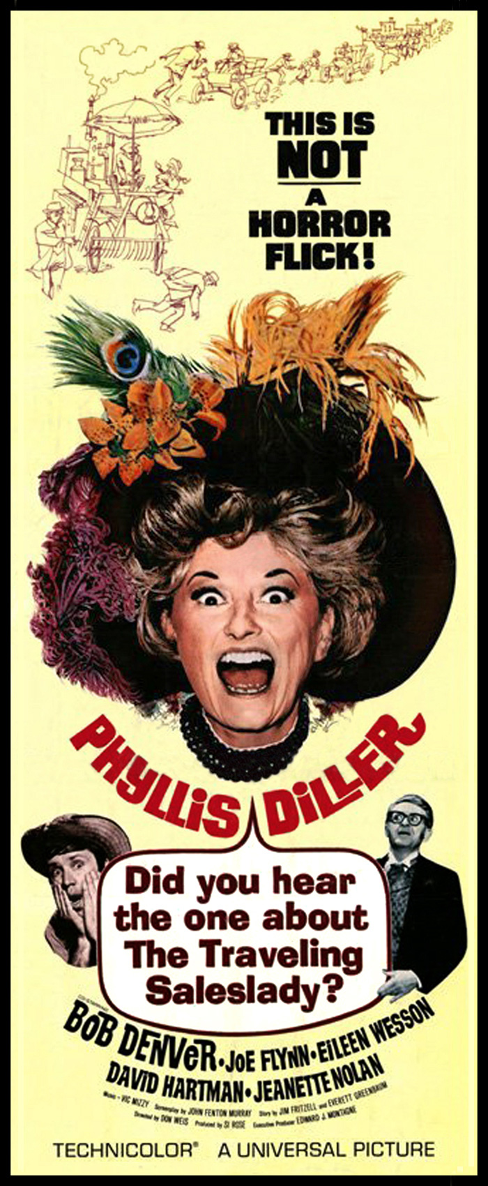 Phyllis Diller was a television fixture throughout the 1960s, but her big-screen choices left a lot to be desired. There was THE FAT SPY, EIGHT ON THE LAM, PINK MOTEL, and Diller even ditched her wild-haired stand-up persona for the 1969 adaptation of Elmer Rice's THE ADDING MACHINE, but the film was barely released to theatres. One of her rare top-billed roles was in this colorful period-comedy, which only ends up proving that a little of Diller's grating schtick goes a long, long way. It's an excruciating 94 minutes, and never remotely weird enough to even classify as a guilty pleasure... In 1910 Missouri, the studio-backlot town of Primrose Junction has a brash new arrival in traveling saleslady Agatha Knabenshu (Diller), who's peddling player pianos, hauls around a full-sized sample model and shocks the puritanical citizens with her garish wardrobe and brazen behavior. Fresh off of GILLIGAN'S ISLAND, Bob Denver plays Bertram Webb, a klutzy local "genius" prone to blowing up his family's barn with home-made inventions like a wood-burning automobile. When Bertram offers to help out Agatha with her unwieldy piano, the instrument predictably ends up demolished (complete with hoary slapstick chaos, like Diller riding the runaway piano throughout town). In order to pay for all of the damage they caused, the pair combine their half-dozen working brain cells and decide to win the cash at the upcoming county fair, with untrained Agatha driving Bertram's makeshift car in a tiresomely 'wacky' climactic race. There's even a dopey love potion deus ex machina to handily wrap everything up... Here's an example of the film's humor: Agatha raises her skirt above the knee in hopes of attracting a man, but instead spooks a nearby horse, which gallops off in the opposite direction. Because Diller is so ugly... Get it?... Then this exact same gag is recycled three more times! Diller's character is obnoxious and insulting, cackles at her own shitty jokes, and unsuccessfully hits on every man in sight, from perpetually-flummoxed bank manager Joe Flynn (McHALE'S NAVY) to hunky farmhand Kent McCord (ADAM-12). Also onboard this interminable trainwreck are David Hartman as the gullible town Constable; generically pretty but emotively one-note Universal contract player Eileen Wesson as Bertram's sweetie; and Charles Lane plays Agatha's grumpy employer. Director Don Weis was best known for episodic TV work -- helming hit shows like IRONSIDE, FANTASY ISLAND and CHiPs -- but his theatrical work was bland, derivative fare like THE GHOST IN THE INVISIBLE BIKINI, PAJAMA PARTY and this rubbish. Meanwhile, scriptwriter John Fenton Murray gives this film the same level of wit and sophistication that he would later bring to episodes of Sid & Marty Krofft's SIGMUND AND THE SEA MONSTERS, THE BUGALOOS and LIDSVILLE. Its only saving grace is a typically bouncy score by Vic Mizzy, who created the theme songs for THE ADDAMS FAMILY and GREEN ACRES.